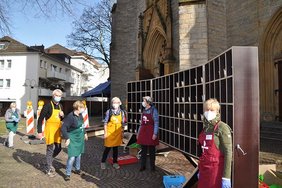 GÜTERSLOH – „Mit der diesjährigen 'Vesperkirche light' machen wir sehr gute Erfahrungen“, erzählt der Initiator und Organisator des Mitarbeiterteams, Pfarrer Stefan Salzmann, begeistert. Natürlich müsse in diesem Jahr alles Corona-konform ablaufen: Hygiene, Verpackung der Suppen und AHA-Regeln für Alle. Auch sei die jetzige Form unter dem Motto „Schenk ' ne Suppe und ein Lächeln“ nicht zu vergleichen mit den ersten drei Vesperkirchen mit großem Begleitprogramm und voll besetzten Tischen zur Mittagszeit. Doch die gute Nachricht der Gütersloher Vesperkirche 2021 schaffte es sogar ins landesweit ausgestrahlte Morgenmagazin am 3. März. Herzlichen Glückwunsch!